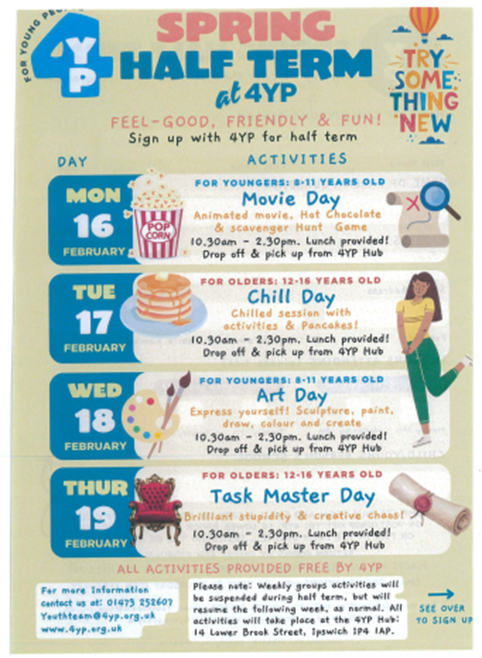 Need to keep the kids occupied this half term? Please see the below activities run by 4YP!